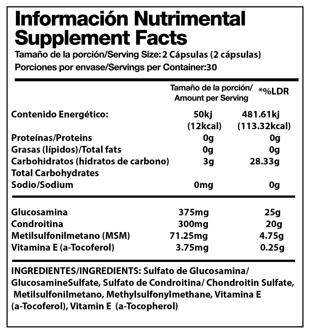 • 750 mg de glucosamina por cápsula