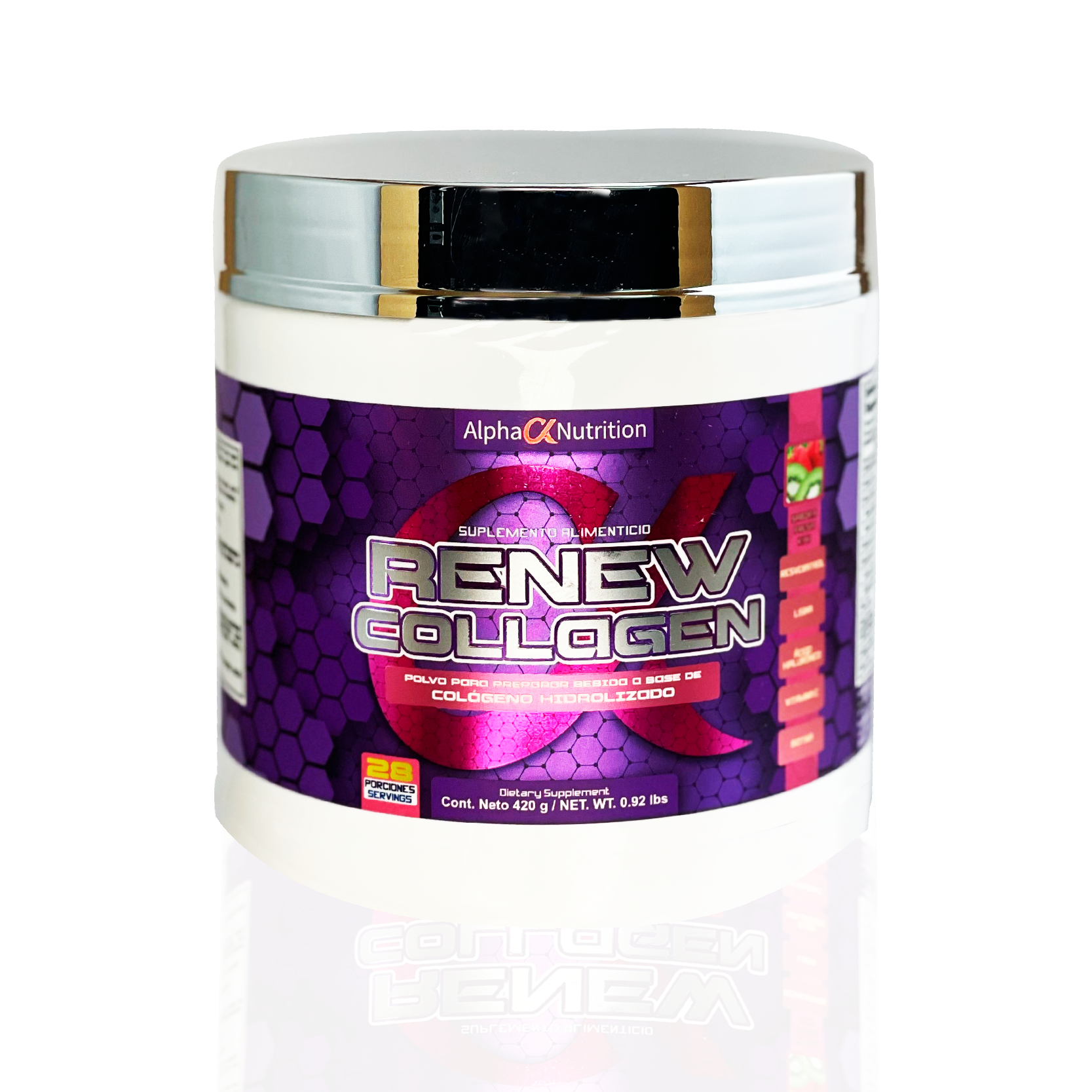 Renew Collagen es un suplemento potente diseñado para mejorar significativamente la apariencia de la piel, uñas y cabello, al mismo tiempo que brinda apoyo esencial a las articulaciones y los huesos. Gracias a ingredientes clave como Resveratrol, Lisina, Ácido Hialurónico, Vitamina C y Biotina, esta fórmula trabaja desde adentro para mantenerte con un aspecto y bienestar óptimos.